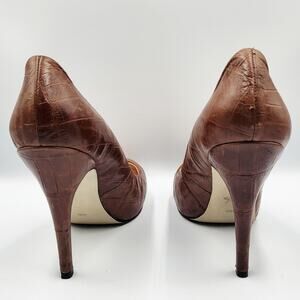 Marc Fisher FTPURPLISH Brown Leather Croc Embossed Round Toe Pumps