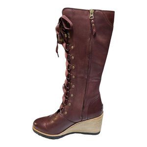 Elegant Red/Brown Lace-Up Wedge Boots