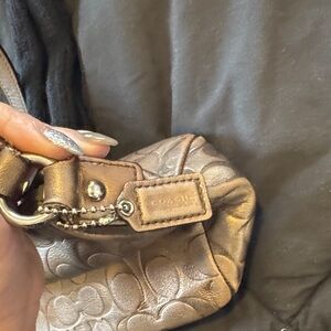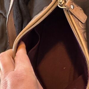 Elegant brown shoulder bag with a stylish design and purple interior. Perfect for any occasion.