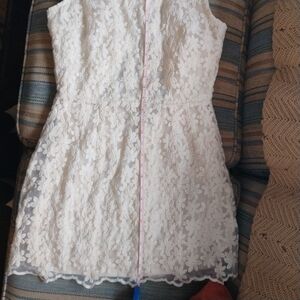 Chic white lace dress with floral patterns. Perfect for special occasions.