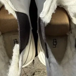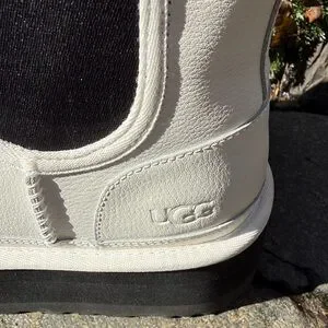 UGG Neumel Platform White Chelsea Boot 🥶❄️- Size 9 US as marked , bright white w/ black accents ! Stretch side panels for ease of on & off !- grippy bottoms - Ugg logo embossed on heels - 2” flat black platform - faux fur comfy cozy interior !!
