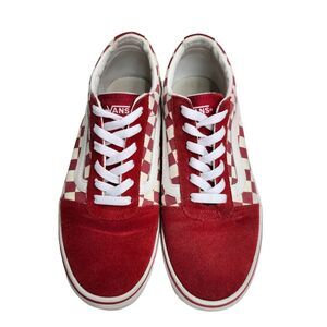 Vans Old Skool Skater Sneakers Womens 8.5 Mens 7 Racing Red Checkerboard Suede