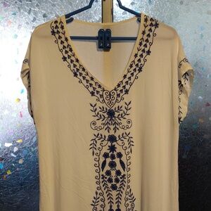 Maxi blue and white dress/cover up with slit in both sides. OSFM. 100%cotton.