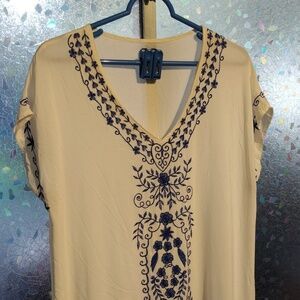 Embroidered Blue And White Cover Up