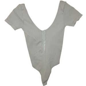 Urban Outfitters Sage Green Ribbed Bodysuit M/L Thong Stretch Hook Front EUC