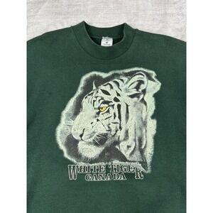 Vtg Nature Sweatshirt Mens XL Green White Tiger Canada Graphic 90s Crewneck