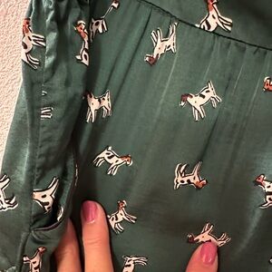 Charming pajama boxer type shorts with a playful dog pattern. Soft and stylish. These are in good condition. They have two from pockets with black piping that accents.