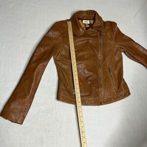 Fossil Women's Brown Leather Moto Jacket Asymmetrical Zip Size Medium Vintage