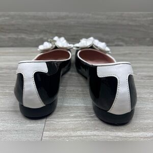 Elegant black flats with white floral accents. Perfect for any occasion. Comfortable and stylish.