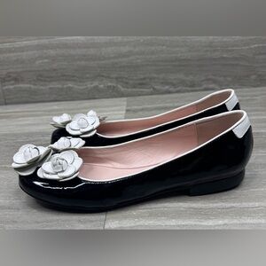 Taryn Rose Triple Flower Black Patent Ballet Flats Women’s Size 6.5