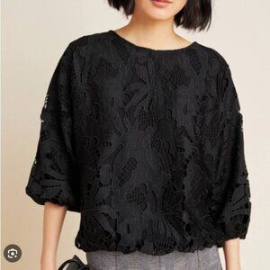 Anthropologie Eri + Ali Lace Overlay Blouson Sleeve Boxy Top Minimalist Preppy M