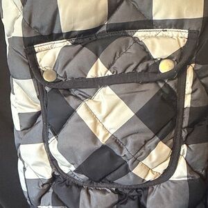 Down vest with a classic black and white plaid design. Perfect for layering.