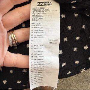 Billabong Cream and White Patterned Long Sleeve V-Neck Button Front Blouse