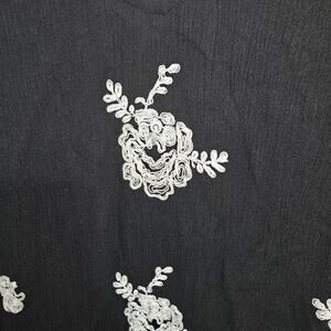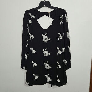 Free People Emma Print Black + White Embroidered Long Sleeve Mini Dress Size S. Lining attached. Gauze style material. The dress features a beautiful floral pattern, a V-neckline, gathered sleeves, pockets and button back closure.