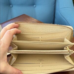 Spacious interior with multiple card slots, bill compartments, and zip coin pocket. A timeless LV wallet that fits easily in totes or can be carried on its own.