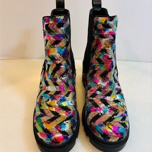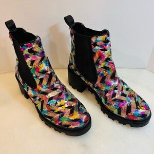 Betsey Johnson Boot | “Rowann”Rainbow Sequin Metallic Lug Sole Sz 9