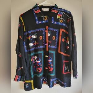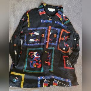 Vintage Nino Wong Abstract Black Shirt Sz M Made in USA 80's Vibes Unique Retro