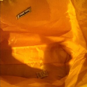 NWT👜NEIMAN MARCUS YELLOW FAUX LEATHER LINED TOTE WITH BROWN HANDLES