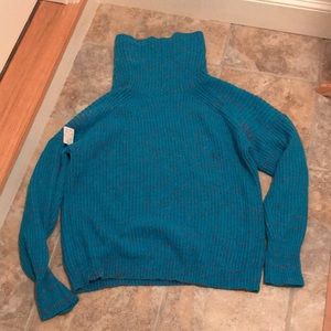 Cozy cowl neck sweater. Vibrant blue color. Perfect for layering.