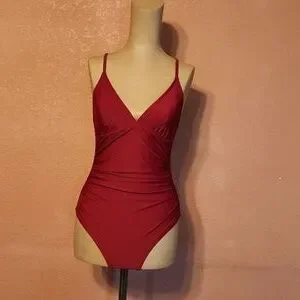 NEW Sangria Burgundy Maroon one piece swimsuit Size S swim Beach Pool Travel