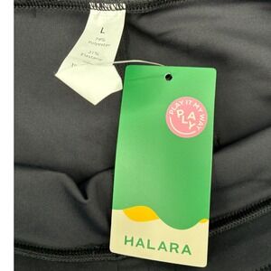 HALARA black high-waisted wide-leg pants in women's size L. Button-fly front with a flattering, structured silhouette—easy to dress up or wear casually.