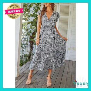 Floral Boho Maxi Dress Wrap V Neck Ruffle Long Flowy Summer Wedding Guest