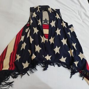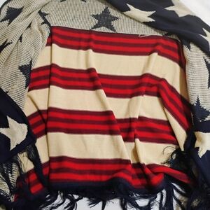 Add a touch of style with this navy and red star-patterned sleeveless cardigan. Perfect for layering, it offers both comfort and flair.NWOT.For measurements please see pictures