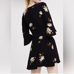 Free People black floral Time on My Side long sleeve mini wrap dress Women’s M