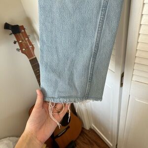 REFORMATION Tahoe Distressed Hem, Ankle Length Jeans with Button Up Fly