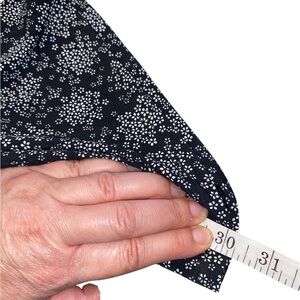 small ditsy floral pattern is so pretty . the wrap top with the belted side provides interest .