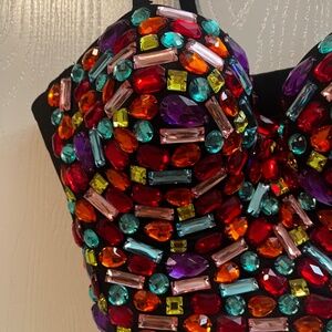 NWT Charmian Rhinestone Push Up Bra Bustier Cropped XL Club-wear Selena