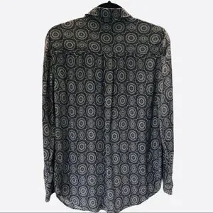 Equipment Signature Slim 100% Silk Blouse, Size M, Grey Medallion Print