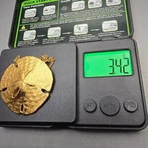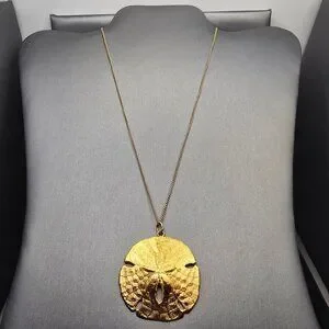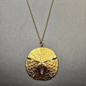 VTG 12K GF Sand Dollar Pendant Necklace 18" Natural Shell 1970s USA