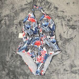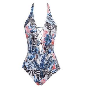 GRACE KARIN Women Swimwear One Piece Backless Swimsuit Floral Lace Up Flamingo