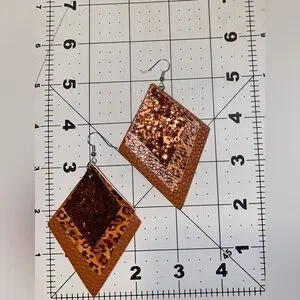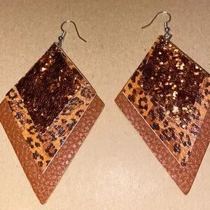 BRAND NEW!! Faux Leather, Glitter, Diamond Shaped, Layered Dangle Earrings. About 3” in Length, 2.2” in width.
