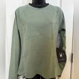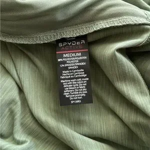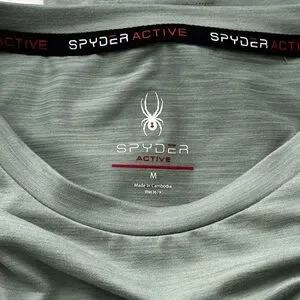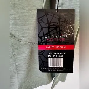Spyder Active long sleeve athletic top. Lightweight, polyester with spandex for stretch. Perfect for indoor or outdoor activities. Thumb hole slits. One small discreet zip pocket to hold keys or cash. Can also be layered under just about anything!