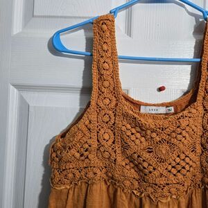 Lush Women M Tiered Midi Ruffle Trim Flowy Feminine Orange Fawn Crochet Dress