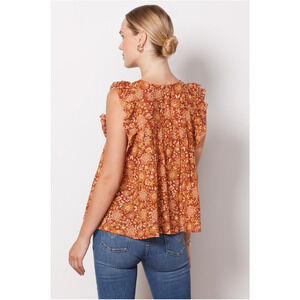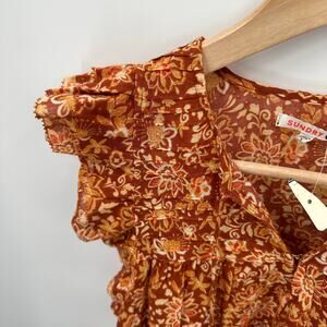 Sunny florals take center stage on this flutter sleeve blouse by Sundry, featuring a split neckline with tassels, pleating on the front and back yoke, and a swingy silhouette. Half-tuck into trousers or pair with high-rise denim.
