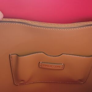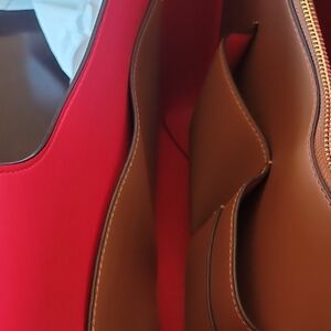 Elegant Halston Heritage tote in brown. Features a striking red interior. Ideal for everyday style. New without tags! Originally purchased from Macy's.