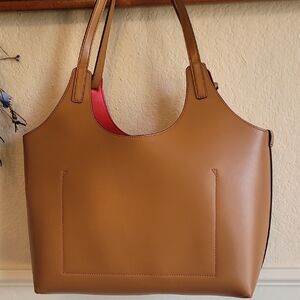 Halston Heritage Brown Tote with Vibrant Red Lining