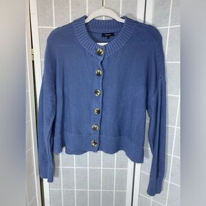 Quince Blue Button-Up Cardigan 100% Organic Cotton Cropped Cardigan