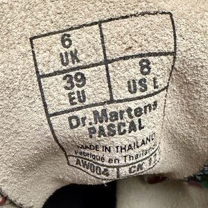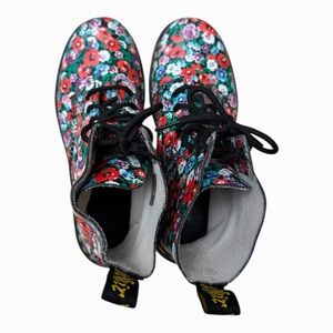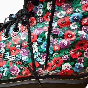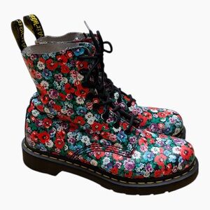 These are Dr. Martens Pascal Floral Poppy Combat Boots. Excellent used condition. Worn once. One of the shoe laces has slight fraying.