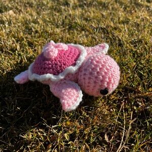 Hand Crocheted Pink Heart Valentine’s Day Turtle Plushie!