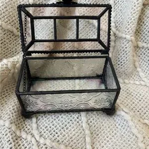 Elegant Glass Jewelry Box with Black Frame and iridescence in Glass by J Devlin