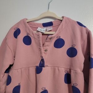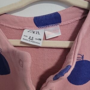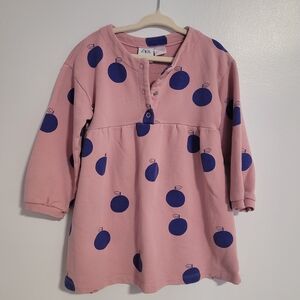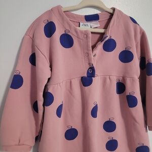 🧸2/20$ Zara Pink Sweatshirt Dress Blue Apple Print Size 2-3T Baby Toddler Girl