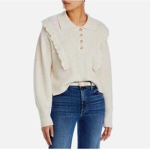 Derek Lam 10 Crosby Noelia Ivory Cream Collared Ruffle Sweater Cropped Women S