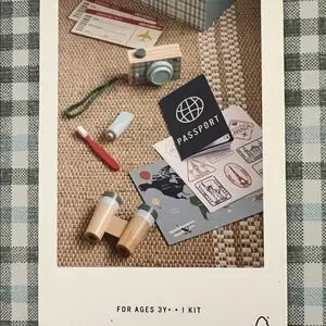 Charming toy travel kit. Includes various play items. Perfect for imaginative play.