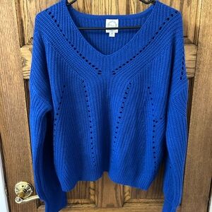 Blue Rain Francesca’s Royal Blue V-Neck Knitted Sweater Women’s Medium NWOT
