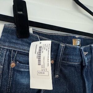 New with tags. Jeans are size 25 but fit like 24. Less is more. Mid-rise jeans with a flared leg and a long 34-inch inseam with a clean hem. Made from cotton with a touch of stretch, Clothing Optional is a dark blue wash with subtle whiskering and fading at the knee.