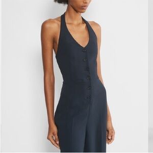 This is a sleeveless button-up jumpsuit with a wide leg, V neckline and smocked back. It’s made with Crepette™ — our one-of-a-kind Japanese crepe fabric beloved for its subtle texture, breezy drape.